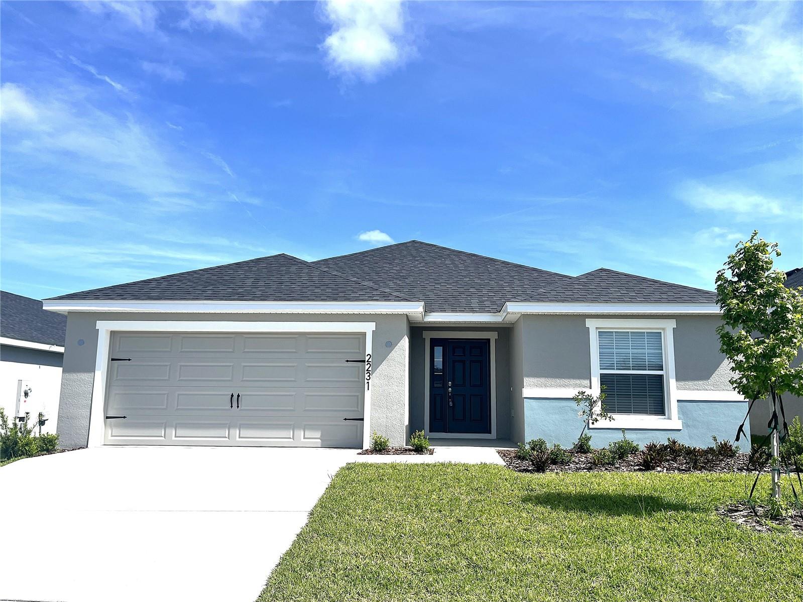 Short Sale. Experience modern living in this like-new home, built in 2024, offering 2,005 square feet of stylish and functional space all on one level. This impeccably maintained residence features 4 bedrooms and 2 baths, highlighted by an open-concept layout that seamlessly connects the chef’s kitchen—complete with shaker-style cabinets, Silestone countertops, Samsung stainless steel appliances, and a spacious island—to the dining café and gathering room. Enjoy luxurious wood vinyl plank flooring throughout the main areas, with cozy stain-resistant carpet in the bedrooms. The owner’s suite provides a walk-in wardrobe and a private bath with dual vanities and a tiled shower. Additional highlights include a covered lanai, a 2-car garage, custom-fit window blinds, architectural shingles, and energy-efficient insulation.