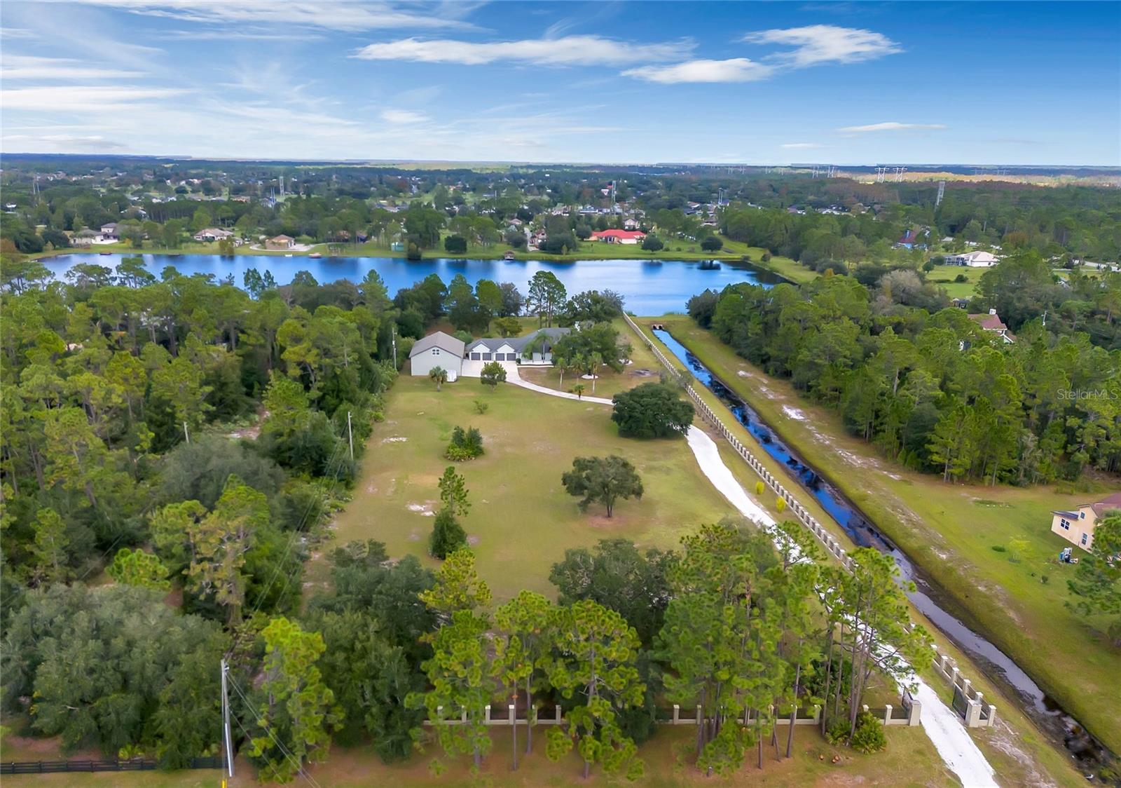 Under contract-accepting backup offers. One or more photo(s) has been virtually staged. Seller may consider buyer concessions if made in an offer ~ Sought-after Rocket City in the heart of Wedgefield is looking for a new neighbor! Is that you? Everything you could want (and more - LAKEFRONT with a DOCK!) on 6 ACRES, fenced/cross fenced and gated with a beautiful 4-bedroom, 2-bath **POOL HOME** + an additional DETACHED GARAGE with a 2-bed, 1-bath apartment featuring a full kitchen and 1500 sq ft of living space! Before exploring the sprawling acreage spend time touring the main home delivering a light and bright open concept with formal and family spaces, LUXURY VINYL PLANK flooring throughout, an open kitchen with views of the lake and a stunning OWNER’S SUITE with a wall of FLOOR TO CEILING WINDOWS to wake up to the gorgeous WATER VIEWS every morning! The owner’s suite also gives the homeowner direct access to the lanai and pool via sliding glass doors, DUAL WALK-IN CLOSETS and a well appointed en-suite complete with dual/split vanities and a whirlpool tub. Three additional bedrooms give you versatile options for room to grow, shared by a second full bath with ample storage and a large walk-in shower. The expansive COVERED LANAI is open to the living room ideal for indoor/outdoor living and perfect for entertaining as it overlooks the SCREENED POOL, large yard and Sandhill Crane Lake beyond! In addition to the 4-car garage attached to the main home this property also boasts a 60x40 detached garage built in 2018 that has 14’ bay doors and can comfortably accommodate a handful of cars, your boat or anything else your heart desires! Above the detached garage you will find a SEPARATE APARTMENT with two bedrooms, one bath and a full kitchen perfect for in-laws, extended family or rental income. ROOF IS 2013 - A/C 2018 - WATER HEATER 2014. Spacious, peaceful and private, this home enjoys easy access to everything the Wedgefield area has to offer and Hal Scott Preserve is practically in your backyard! The optional HOA means no pressure and you are just minutes to Wedgefield Golf Club, Wedgefield Park and a short commute to FL 520, FL 528, Colonial Dr, Waterford Lakes Town Center, Valencia College, UCF and plenty of dining and shopping options. This ONE OF A KIND property is easy to show and ready for a new owner - call today to schedule your tour!