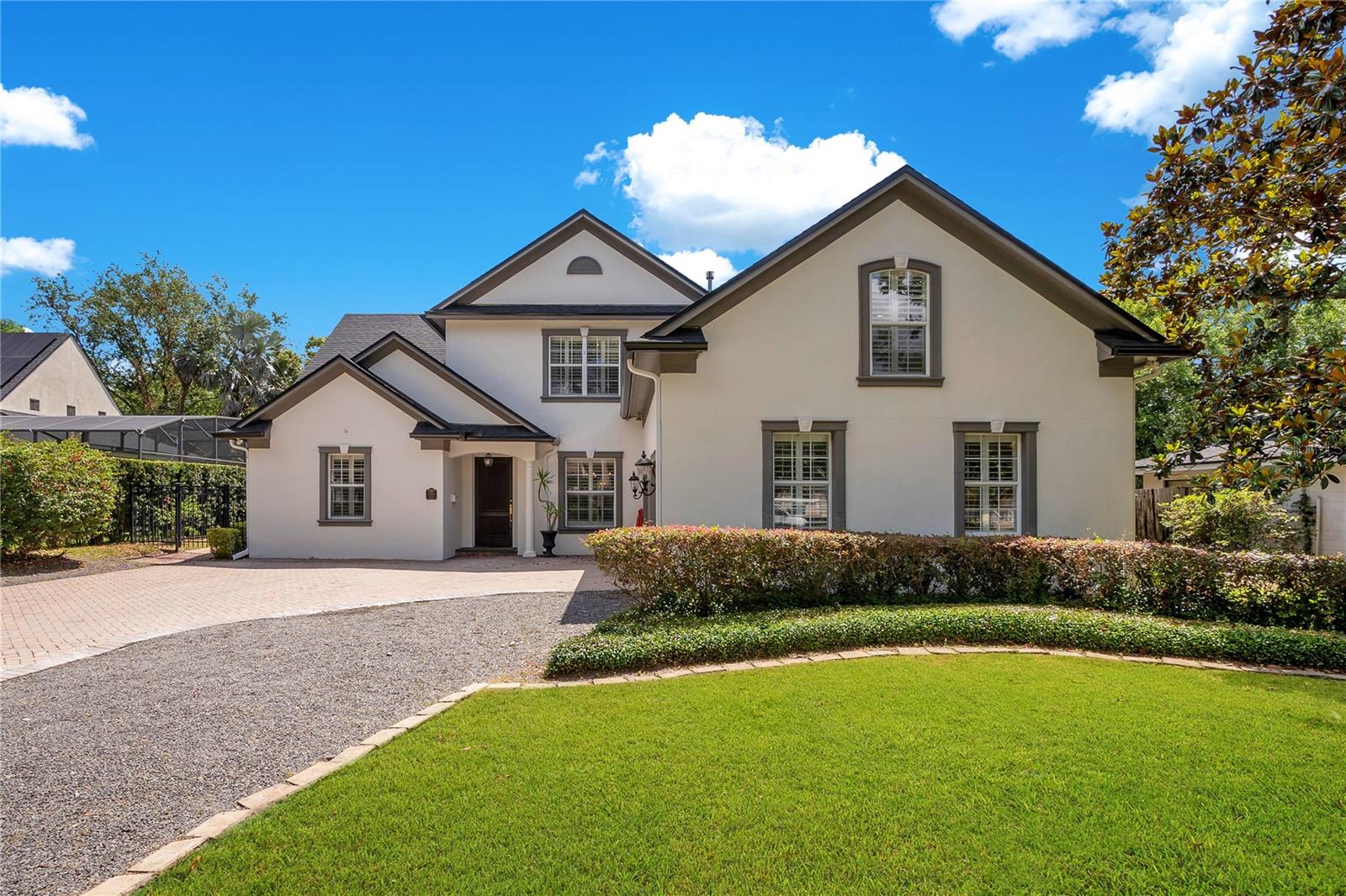 Step into a world of unmatched luxury and meticulous detail in this stunning custom-built home located in the heart of Winter Park. This home spans two levels of exquisite living spaces designed for comfort and entertainment, featuring four bedrooms, three full bathrooms, two half bathrooms, and a large bonus room. As you enter, the grand foyer invites you into a voluminous layout, accented by Brazilian Cherry hardwood floors, extensive crown molding, and plantation shutters that add a touch of elegance to the 10-foot high ceilings. The formal living and dining rooms provide an impeccable setting for hosting, complemented by a gourmet kitchen that’s sure to impress with its high-end stainless steel appliances, including a 48” gas stove, granite countertops, and an island with a built-in wine cooler, making it perfect for any culinary adventure. The family room, anchored by a cozy gas fireplace and French doors, opens to a lush tropical oasis with mature landscaping ensuring privacy with high hedging surrounding the property. Here, a screened pool and spa create a serene retreat with a pool bathroom and surround sound system for ultimate relaxation and entertainment. The ground floor primary suite is a true sanctuary, featuring two California Closets, a hand-painted tray ceiling, and direct outdoor access through beautiful French doors. The opulent en-suite bathroom offers a whirlpool tub, a separate shower with multiple shower heads, and a vanity mirror with a built-in TV for a spa-like experience. Upstairs, the additional bedrooms include a second primary suite with a dressing room and another bedroom with an en-suite bathroom. A spacious bonus room on this floor serves ideally as a game room or home theater, adding to the home's luxurious appeal. Located in a highly sought-after neighborhood and a prime location that provides easy access to top-rated schools, boutique shopping, fine dining, and cultural venues, making it a perfect blend of luxury living and convenience. This home is not just a residence but a statement of luxury, exclusivity, and a testament to the careful craftsmanship in one of Florida's most sought-after neighborhoods. Schedule your private showing today and enjoy the best of both worlds – a private haven and a splendid venue for entertaining guests. Welcome to your new home in Winter Park, designed for those who desire the very best in life.