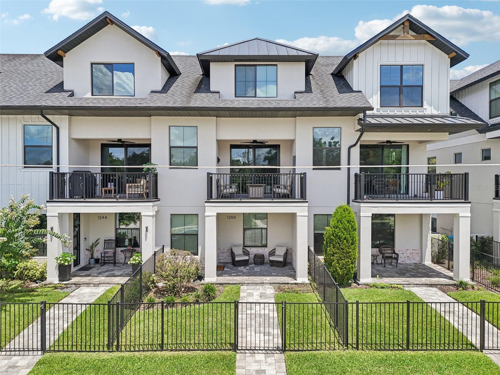 Modern living meets unbeatable location in this stunning 3 bedroom, 3.5 bathroom home nestled in the highly sought-after Urban Green Community. Built in 2022, this move-in ready residence showcases sleek, contemporary finishes throughout all three levels. Step up to a welcoming covered and pavered front porch, fenced-in front yard, and into a thoughtfully designed layout. The first floor offers a private bedroom with its own walk in closet and ensuite—perfect for guests or a home office. On the second floor, enjoy open-concept living with a bright and airy great room featuring high ceilings, recessed lighting, and seamless access to an oversized balcony through sliding glass doors. The modern kitchen is a showstopper, complete with quartz countertops, stainless steel appliances, a walk-in pantry, white shaker cabinets and a large center island with breakfast bar seating. Upstairs, you'll find two additional bedrooms, including the spacious primary suite with a walk-in closet, double vanity, glass-enclosed shower, and built-in shelving. The third bedroom also includes its own ensuite for added privacy and comfort. Additional highlights include an oversized rear-entry 2-car garage, laundry room, ample storage, and low-maintenance living. Enjoy unbeatable proximity to I-4, Downtown Orlando, Dubsdread Golf Course, Rollins College, Park Avenue, and Winter Park Village—offering endless dining, shopping, and entertainment options. This modern gem offers the best of both worlds: a turnkey home in a central, vibrant location. Don’t miss your chance to own in one of Orlando’s most desirable areas!